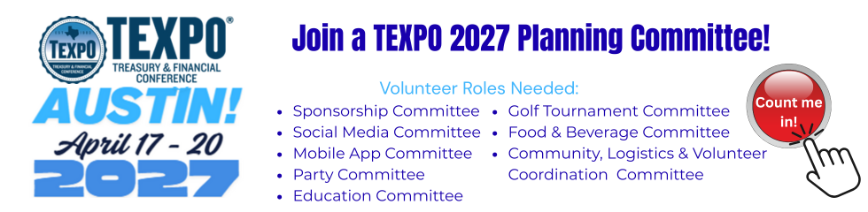 ![]() TEXPO® is a financial management conference sponsored by the Alliance of Texas Treasury Associations (ATTA), a non-profit organization that brings together the five Texas regional Association for Financial Professional affiliates – Austin, Dallas, Fort Worth, Houston and San Antonio.